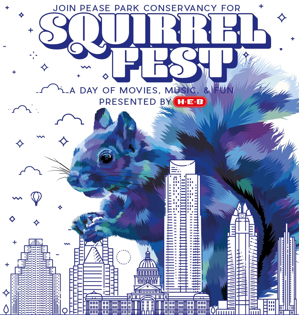 To celebrate Kingsbury Commons at Pease Park, Pease Park Conservancy and presenting sponsor, H-E-B, bring you Squirrel Fest – a day of music, fun, and a movie in the park! At this free, family-friendly event, you can enjoy music, activities, food, and Kingsbury Commons park amenities, followed by the movie, Zootopia, on the Great Lawn after dark. This is a community-wide event so feel free to share it with friends!