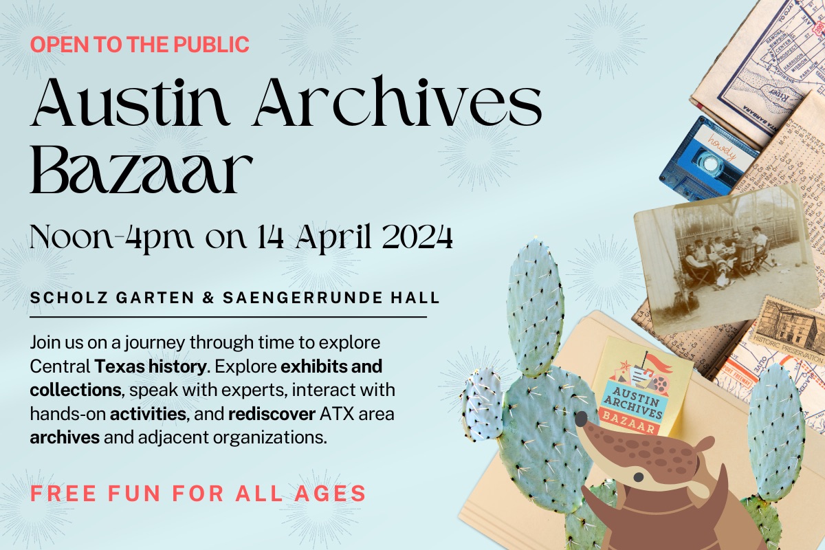 Plus, the first 250 attendees will receive a free goodie bag! The Austin Archives Bazaar is organized by the Archivists of Central Texas (ACT), a non-profit (501(c)3) group of local professional archivists.