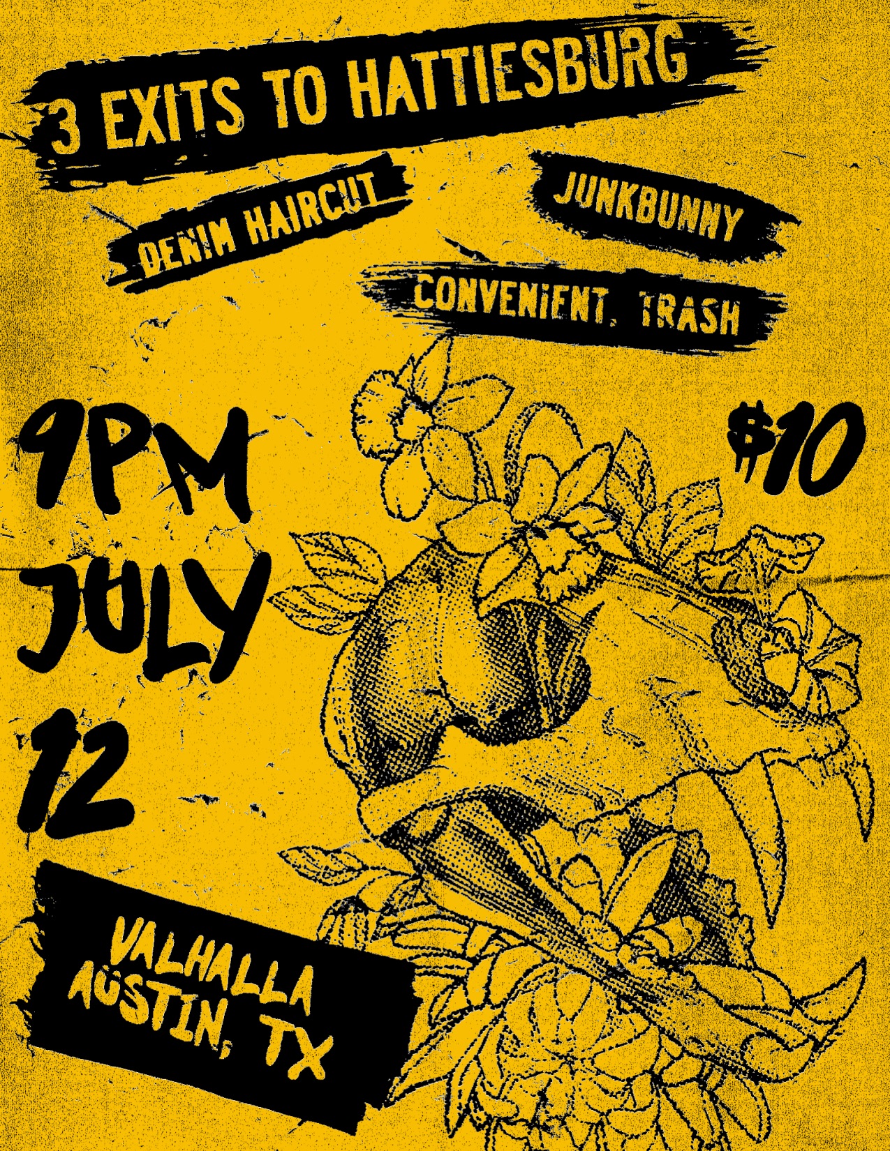 3 Exits to Hattiesburg returns to Valhalla on July 12 with special guests Denim Haircut, Convenient Trash, and JunkBunny! Come out for a night of great music and drinks.