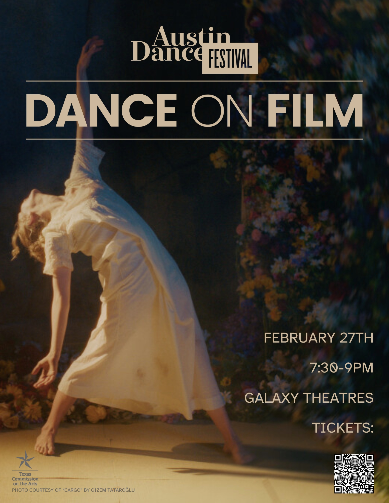 Austin Dance Festival is proud to present “Dance on Film” on Thursday, February 27, 2025 from 7:30p.m. – 9:00p.m. CST at Galaxy Theatres in Austin, TX.