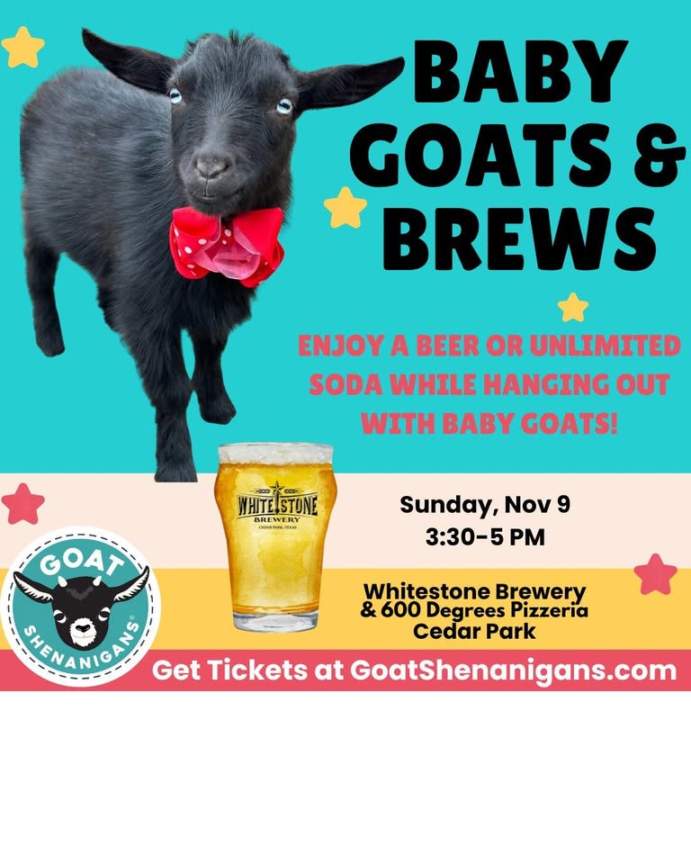 Since our last event was sold out (and so much fun!) we’re bringing the baby goats back out for another day! Get your tickets and come hang out with the adorable little goats from “Goat Shenanigans”! Participants are welcome to play and cuddle with, take pictures with, and feed treats to the goats! Adult tickets include a core beer pint and kids tickets include unlimited soda, plus tickets get you $1 off all additional beers for the day and 15% off your food purchase!