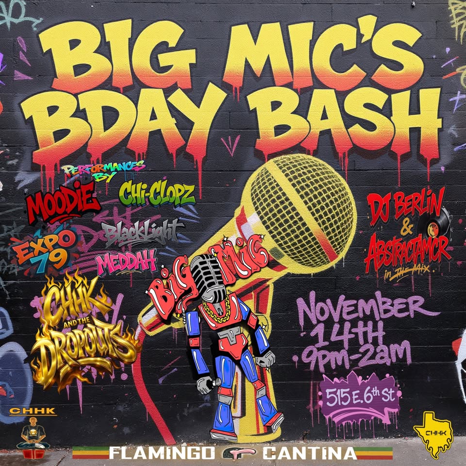 Come celebrate Big Mic’s Birthday with a stellar cast of musical performances! Featuring CHHK & The Dropouts, BlackLight, Moodie B, Chi-Clopz, Meddah, & Expo 79! Guaranteed to be a fun night of music & community building that you will not want to miss!!!