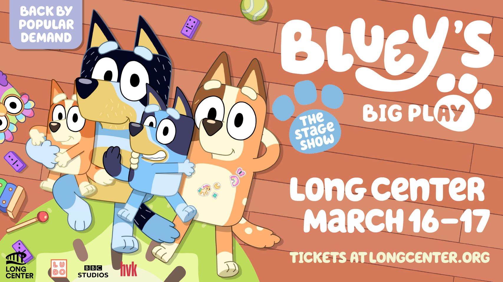 Bluey´s Big Play is a brand-new theatrical adaptation of the Emmy® award-winning children´s television series, with an original story by Bluey creator Joe Brumm, and new music by Bluey composer, Joff Bush.