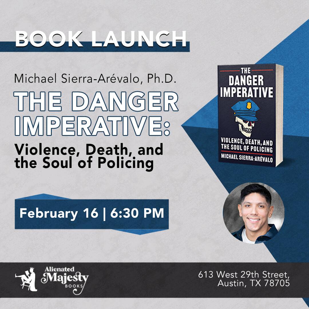JOIN US at Alienated Majesty Books for the launch of The Danger Imperative: Violence, Death, and the Soul of Policing by local author and professor Michael Sierra-Arévalo. The event is on Friday, February 16, starting at 6:30 PM. There will be a reception with refreshments and an author talk, followed by a Q&A and book signing. This is a free event.