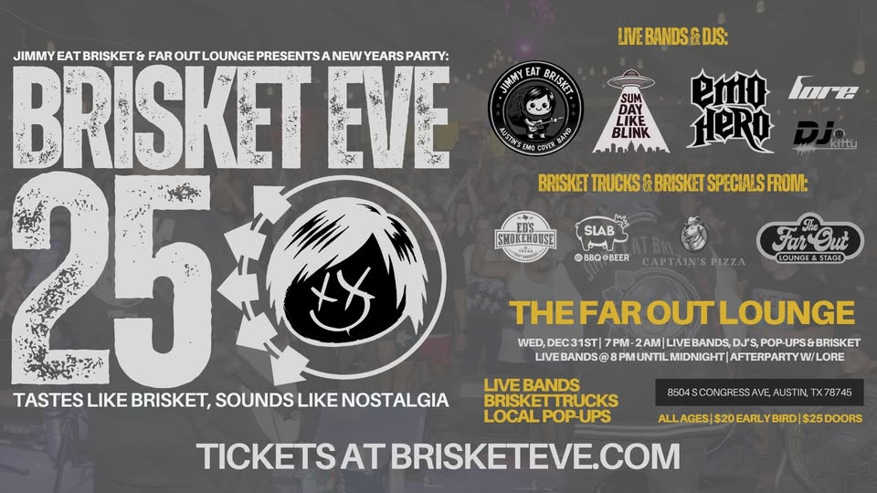 Join us for BrisketEve 2025 — Austin’s late-night celebration of smoked meat, pop-punk nostalgia, and good times.