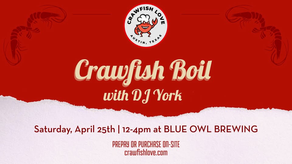 They’re bringing their signature Cajun flair to the heart of Austin, serving up heaping trays of live-boiled crawfish tossed in a shimmering, dusted with bold and aromatic spices. Imagine the snap of juicy tails and the savory soak of corn and potatoes, all perfectly paired with a refreshing Blue Owl beer, all while listening to tunes spun by DJ York.