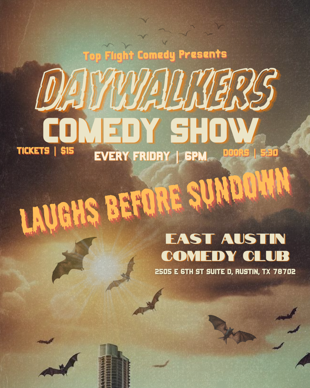 Leave the yawns at home! Our Daywalkers comedy show is for the morning birds who can take full advantage of the Early Bird Special at the East Austin Comedy Club, where we showcase a top-flight lineup of the nation’s finest comedians. It’s full of surprises; you never know who may drop in! Tailored for those who shine in the earlier hours, our 6 PM show promises to wrap up in time for you to enjoy the rest of your evening at home or out on the town.