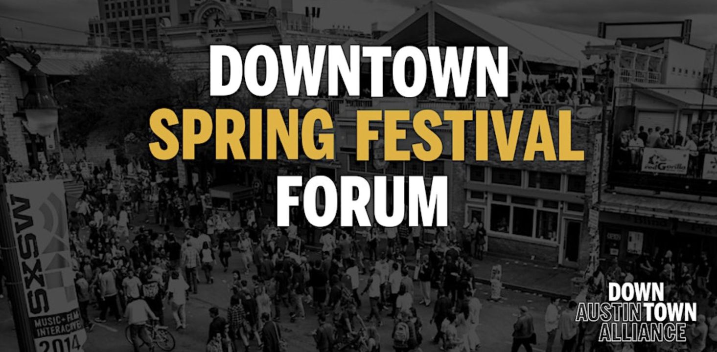 Spring festival season is almost here! Join us for our annual information session in preparation for downtown’s busiest season, including SXSW and the CMT Country Music Awards. Hosted by the Downtown Austin Alliance, the panel will feature experts from SXSW, Country Music Awards, Austin Police Department and Capital Metro. Please register in advance.