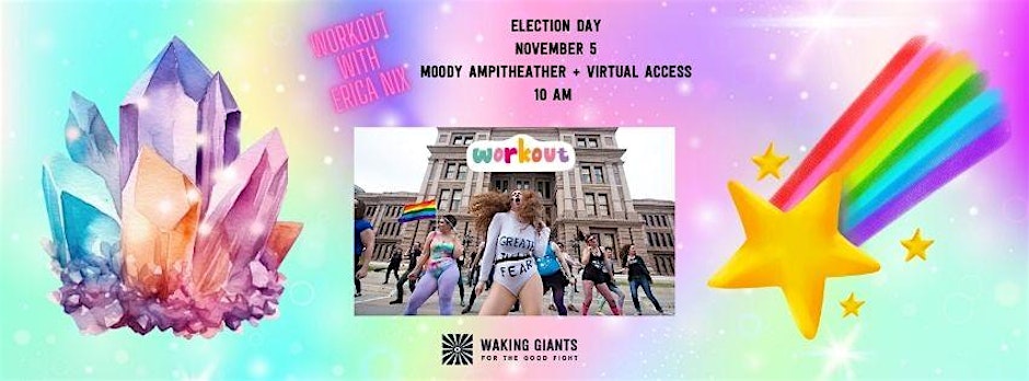 Come join us on Election Day for a high-energy workout class with the fabulous Erica Nix! Let’s sweat out all the stress and anxiety of the day together. This in-person AND virtual event will get your body moving and your spirits lifted.