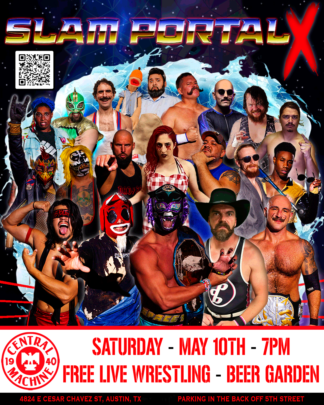 Austin’s most entertaining and only galactic licensed professional wrestling promotion returns Saturday, May 10th to the Central Machine Works Beer Garden for a free show, equipped with new stage and outdoor canopies for maximum outdoor comfort.