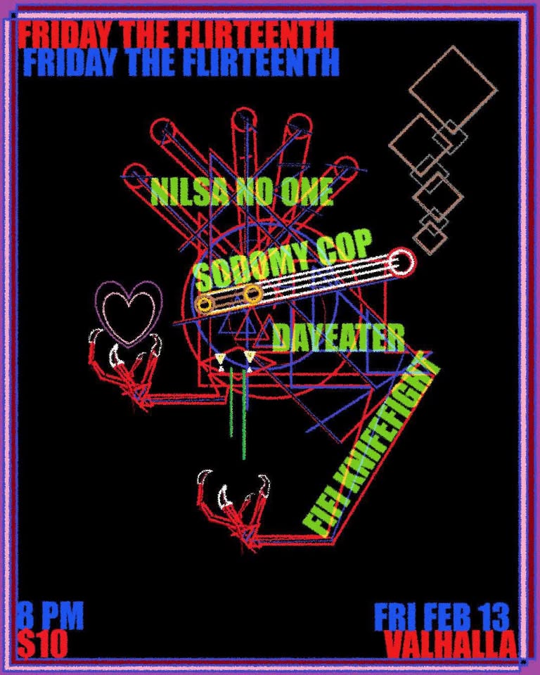 Friday Feb 13 Nilsa No One, Sodomy Cop, Dayeater, Fifi Knifefight