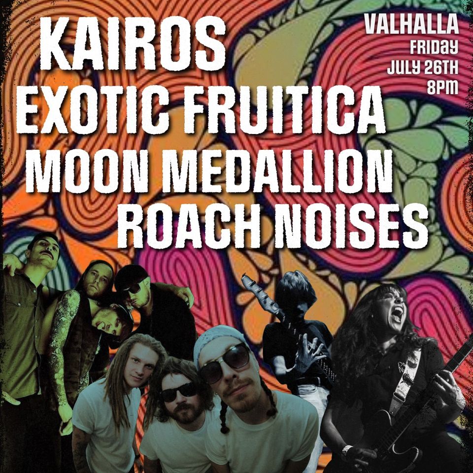 Friday July 26 Kairos, Exotic Fruitica, Moon Medallion, Roach Noises