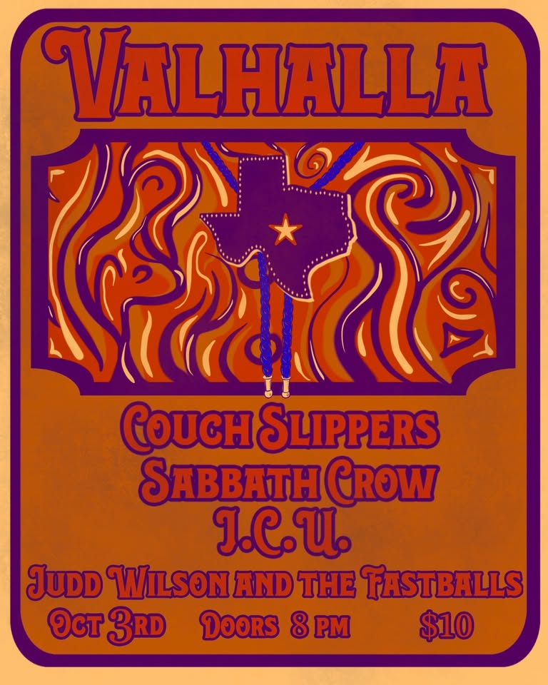 Friday Oct 3 Couch Slippers, Sabbath Crow, ICU, Judd Wilson & the Fastballs