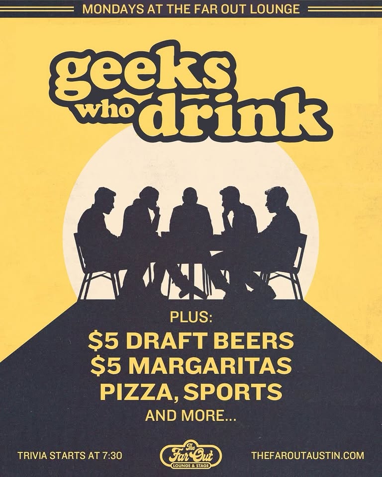 Join us for a Geeks Who Drink Trivia Night at The Far Out Lounge! Every Monday Night at 7:30pm