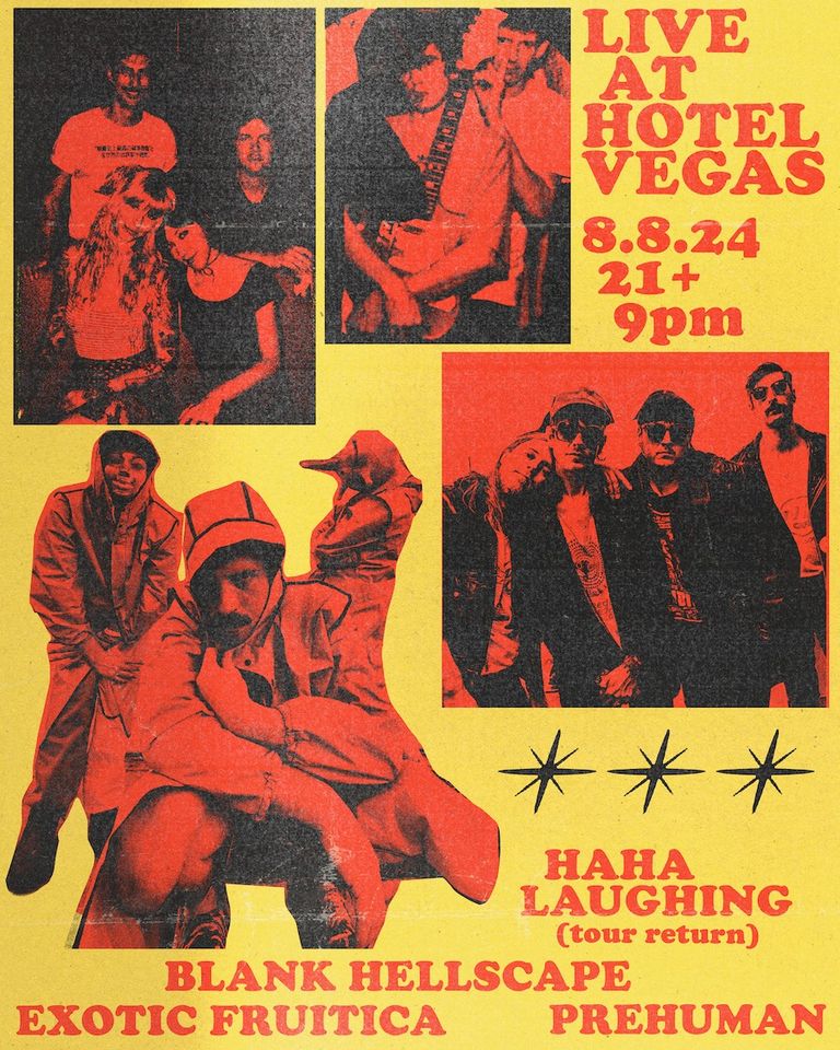 Back to Haha Laughing (Tour Return), Exotic Fruitica, Blank hellscape, Prehuman at Hotel Vegas