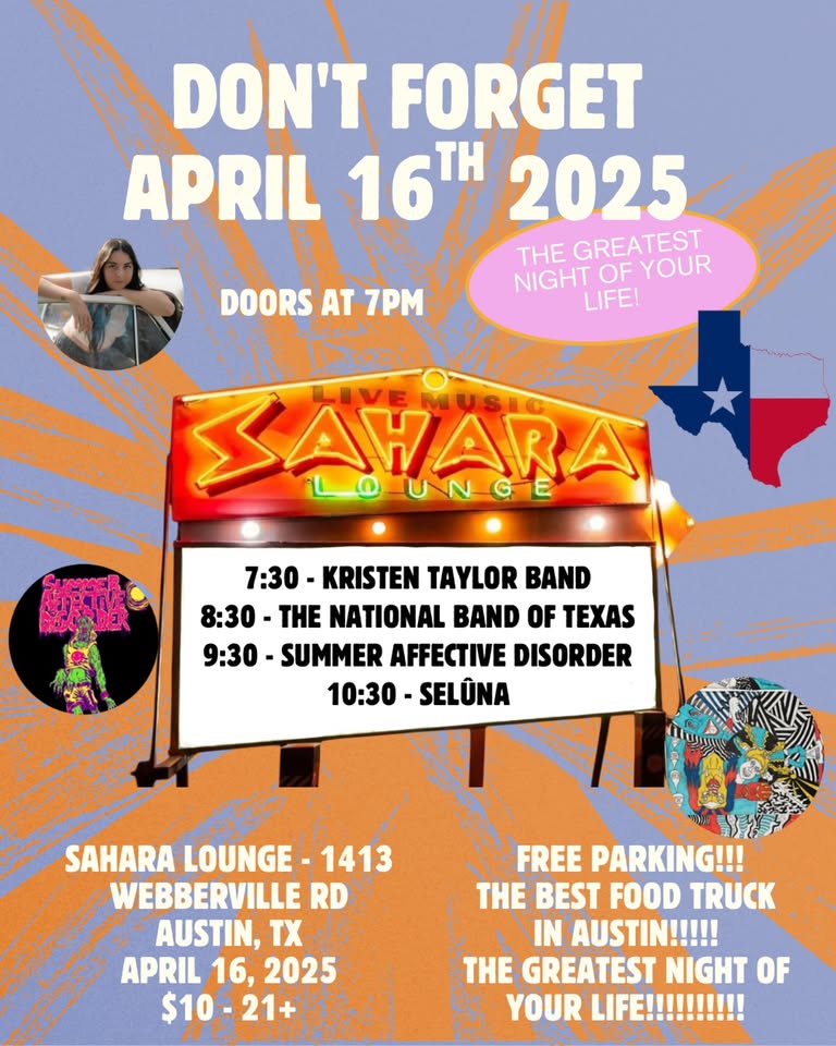Back to Kristen Taylor Band | The National Band of Texas | Summer Affective Disorder | Selûna