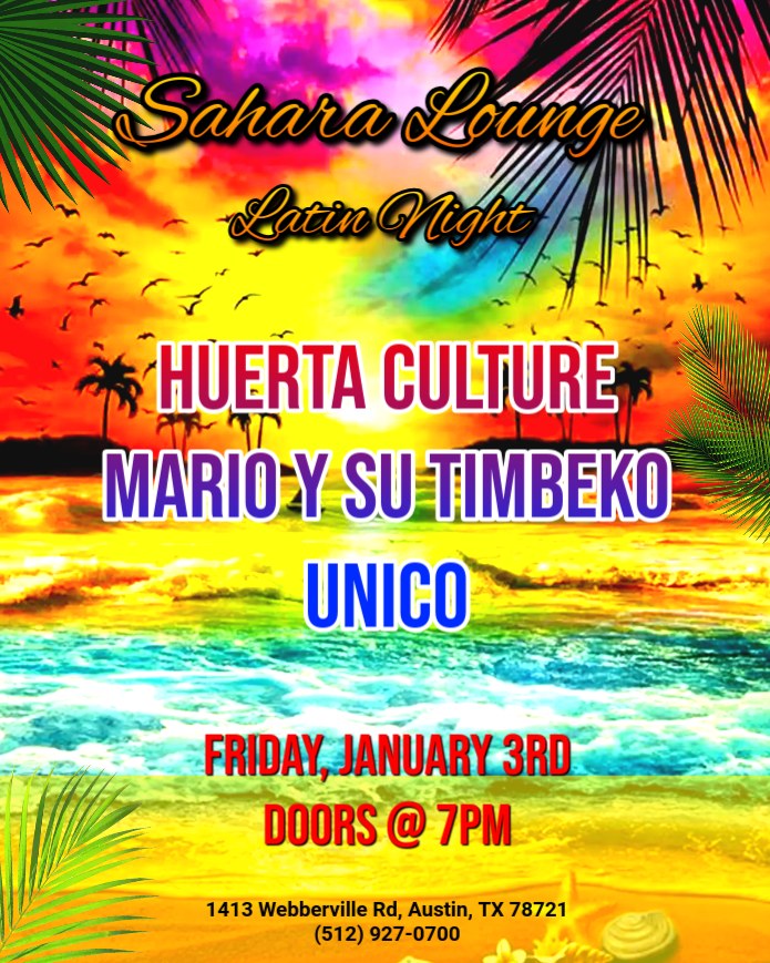 Back to Latin Fusion night at Sahara Lounge! Único, Mario y Su Timbeko, and Huerta Culture