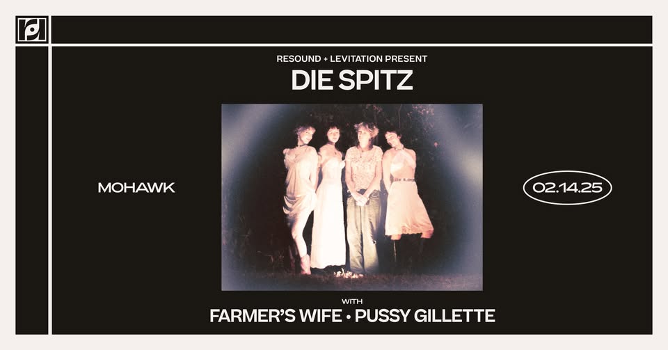LEVITATION & Resound Present: Die Spitz w/ Farmer’s Wife & Pussy Gillette at Mohawk on 2/14