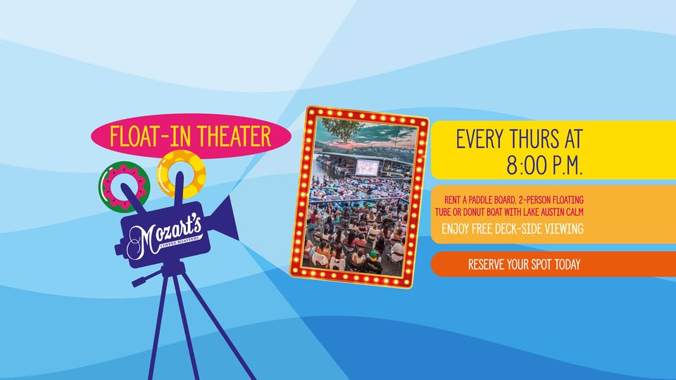 Join us for a movie night on the water and under the stars as part of our Movies on the Lake series at Mozart’s Coffee Roasters. Each Thursday, our lakefront transforms into a one-of-a-kind outdoor cinema on beautiful Lake Austin.