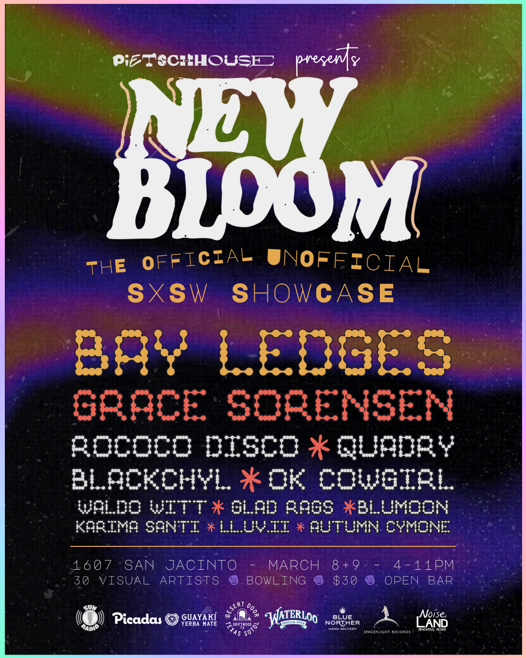 New Bloom will take place over two days and include 12 music performances, 30 exhibiting artists, open bar, food vendors, and a lil somethin’ special: the oldest bowling alley in Texas.
