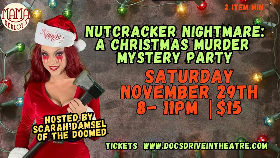 Welcome to Mama Merlot’s Speakeasy for a night of mystery and mayhem at Nutcracker Nightmare: A Christmas Murder Mystery Party ! Join us on November 29, 2025 at 8:00 PM for a thrilling evening filled with suspense and intrigue. Put on your detective hat and get ready to solve a festive crime like no other. Don’t miss out on this unique holiday experience!