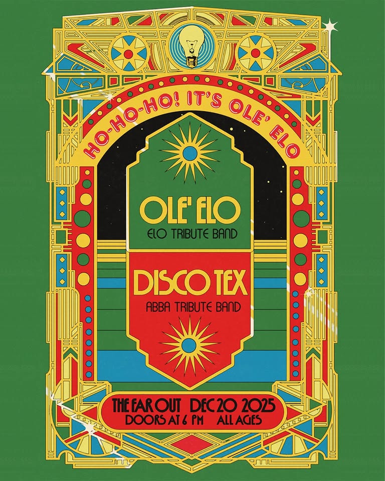 Join us for a holiday hoedown with Ole ELO and Disco Tex! Dress to impress for a very merry winter party combining Austin’s own Electric Light Orchestra tribute with the best ABBA tribute band In town. Saturday, December 20 at The Far Out Lounge. All ages are welcome!
