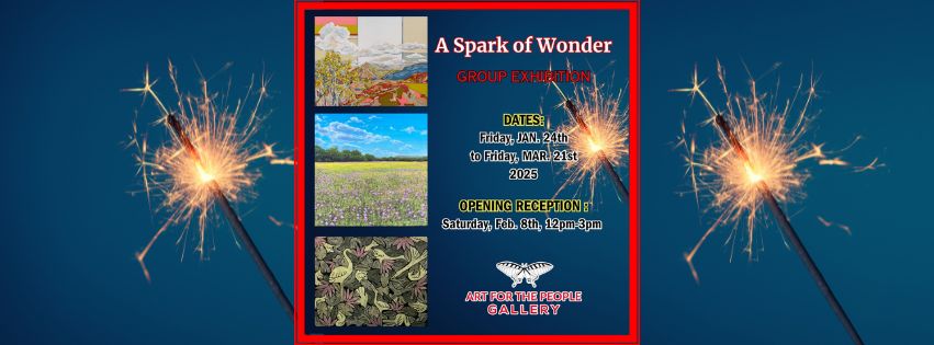 Art for the People Gallery is proud to present their first exhibition for 2025 – “A Spark of Wonder,” an exhibition featuring 39 superb Austin Tx artists. The exhibition opens on Friday, 24th of January with the Opening Reception on Saturday, 8th of February, 12:00pm – 3:00pm.