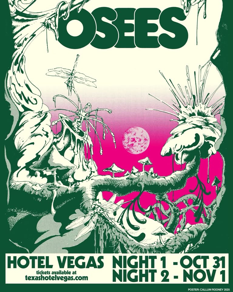 OSEES are John Dwyer (vocals/guitar/synths), Tom Dolas (guitar/samples/keys), Tim Hellman (bass), and Dan Rincon (drums)