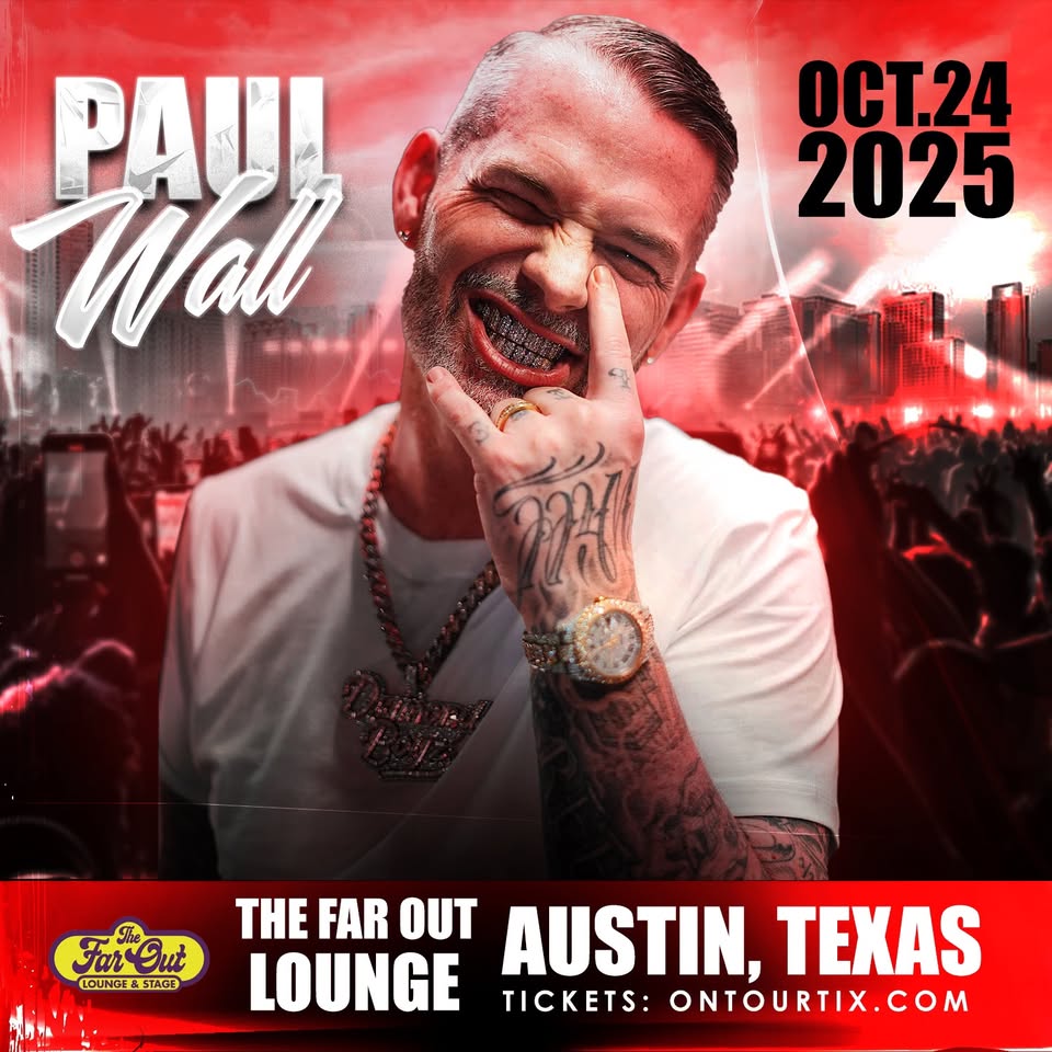 Get ready for a night of Southern hip-hop at its finest as Houston´s own Paul Wall brings his iconic flow and undeniable energy to The Far Out Lounge. Enjoy an unforgettable evening under the Texas sky with classic hits, fresh tracks, and that signature H-Town vibe in one of Austin´s most beloved outdoor venues.