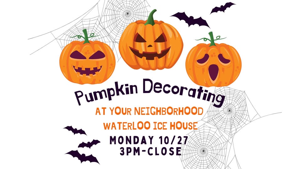 Join us for pumpkin decorating on Monday, 10/27 from 3pm-close at all Waterloo location!
