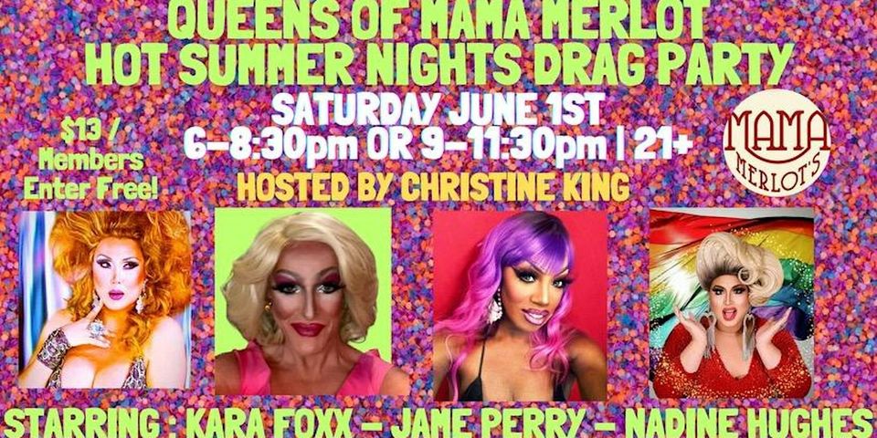 Get ready to sizzle at Mama Merlot’s Hot Summer Night Drag Party with the fiercest queens in town!