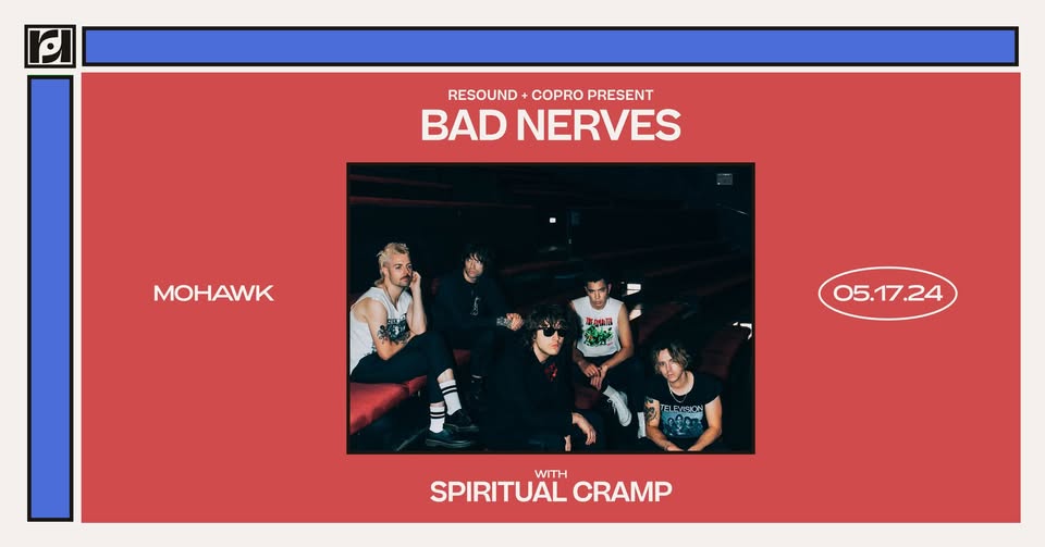 Resound Presents: Bad Nerves with Spiritual Cramp and The Oxys is happening on Saturday, May 17, 2025, at Mohawk Austin, located at 912 Red River St.