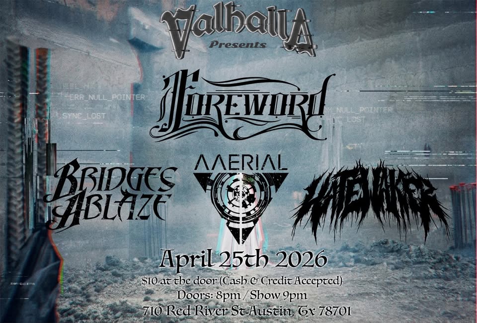 Saturday April 25 Foreword, Bridges Ablaze, Aaerial, Hatewaker