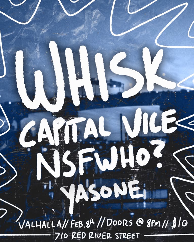 Saturday Feb 8 Whisk, Capital Vice, NSFWho?, Yasone