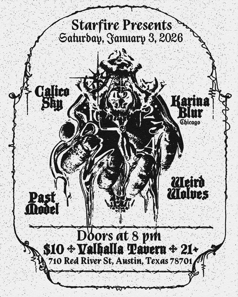 Saturday January 3 Calico Sky, Past Model, Karina Blur, Weird Wolves