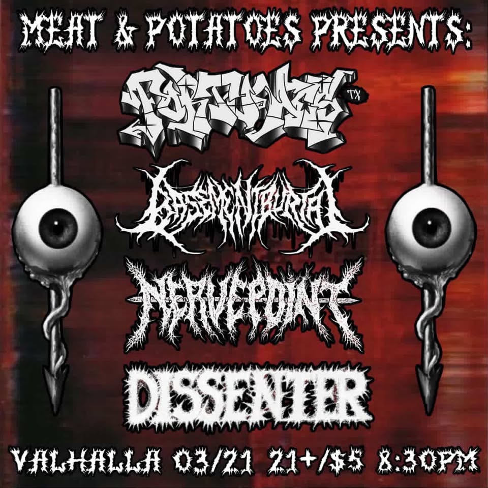 Saturday March 21 Fortunes Tx, Basement Burial, Nervepoint, Dissenter