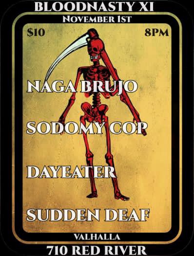 Saturday Nov 1 BLOOD NASTY XI Naga Brujo, Sodomy Cop, Dayeater, Sudden Deaf