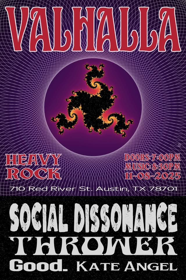 Saturday Nov 8 Social Dissonance, Thrower, Good., Kate Angel