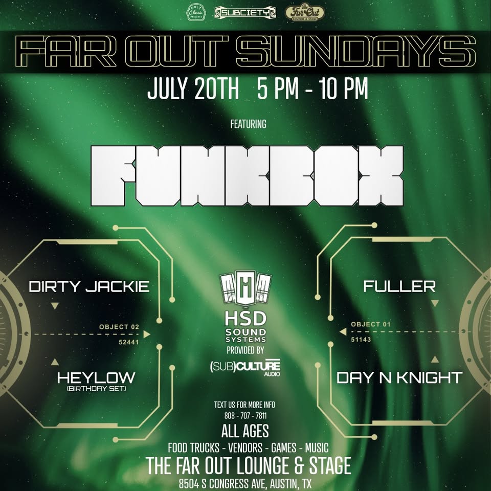 Back to Subciety x Far Out Lounge x (Sub)culture Audio Present: Far Out Sundays Ft. FunkBox