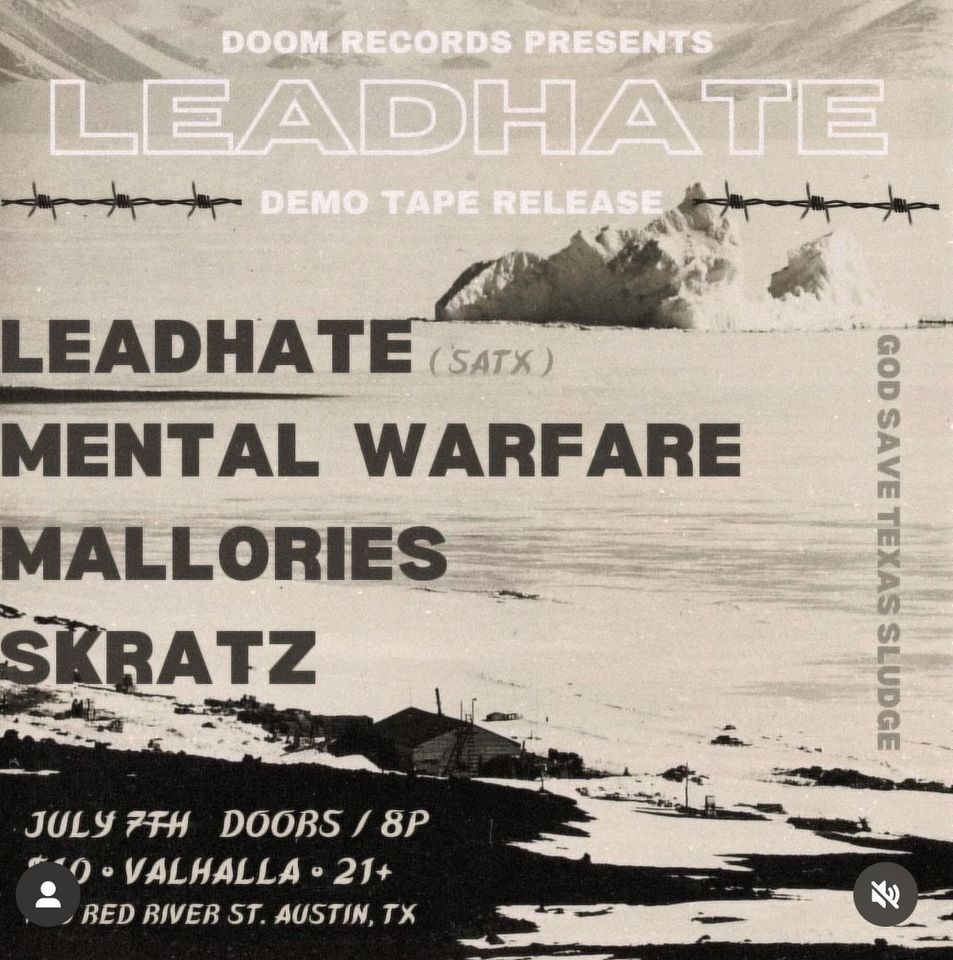 Sunday July 7 Leadhate, Mental Warfare, Mallories, Skratz