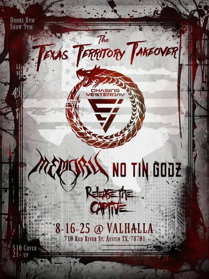 Enjoy the energetic intensity of Houston heavy rock/metal bands Memory and Chasing Yesterday on their Texas Territory Takeover coming through the state capital!