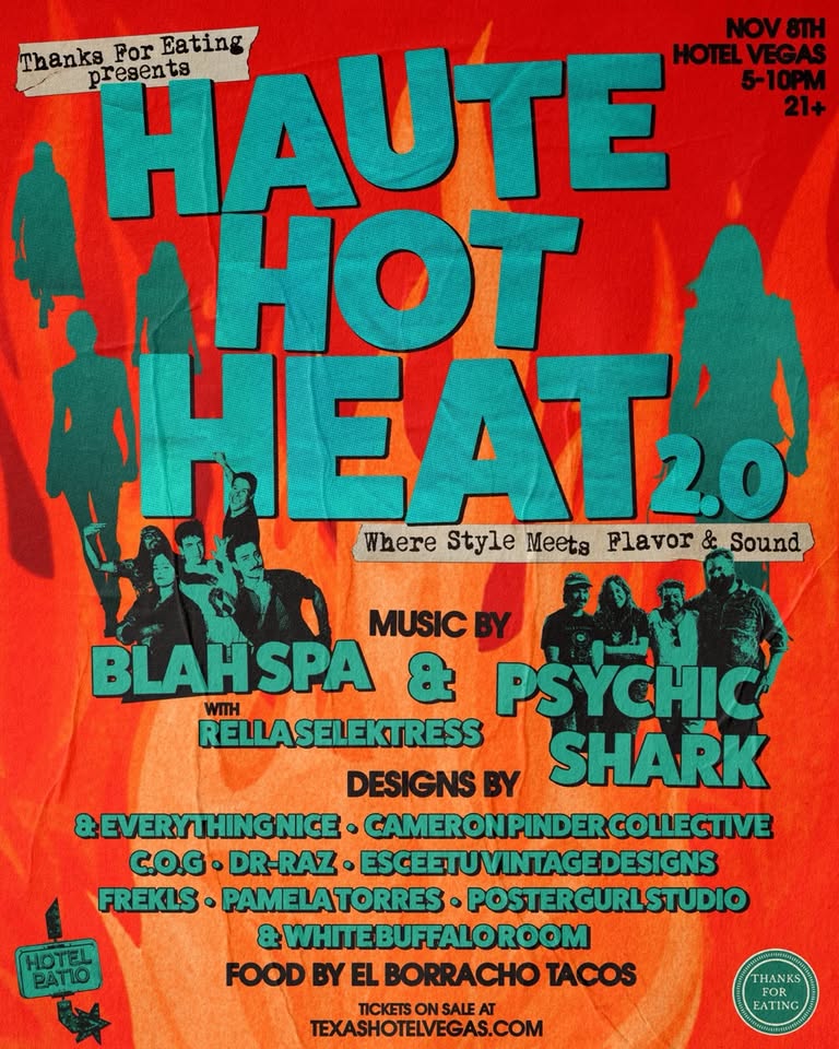 Join us for a sizzling event filled with music, food, drinks, and FASHION. Get ready to dance the night away with live performances from Austin artists Blah Spah & Psychic Shark with DJ Rella Selektress on the decks.