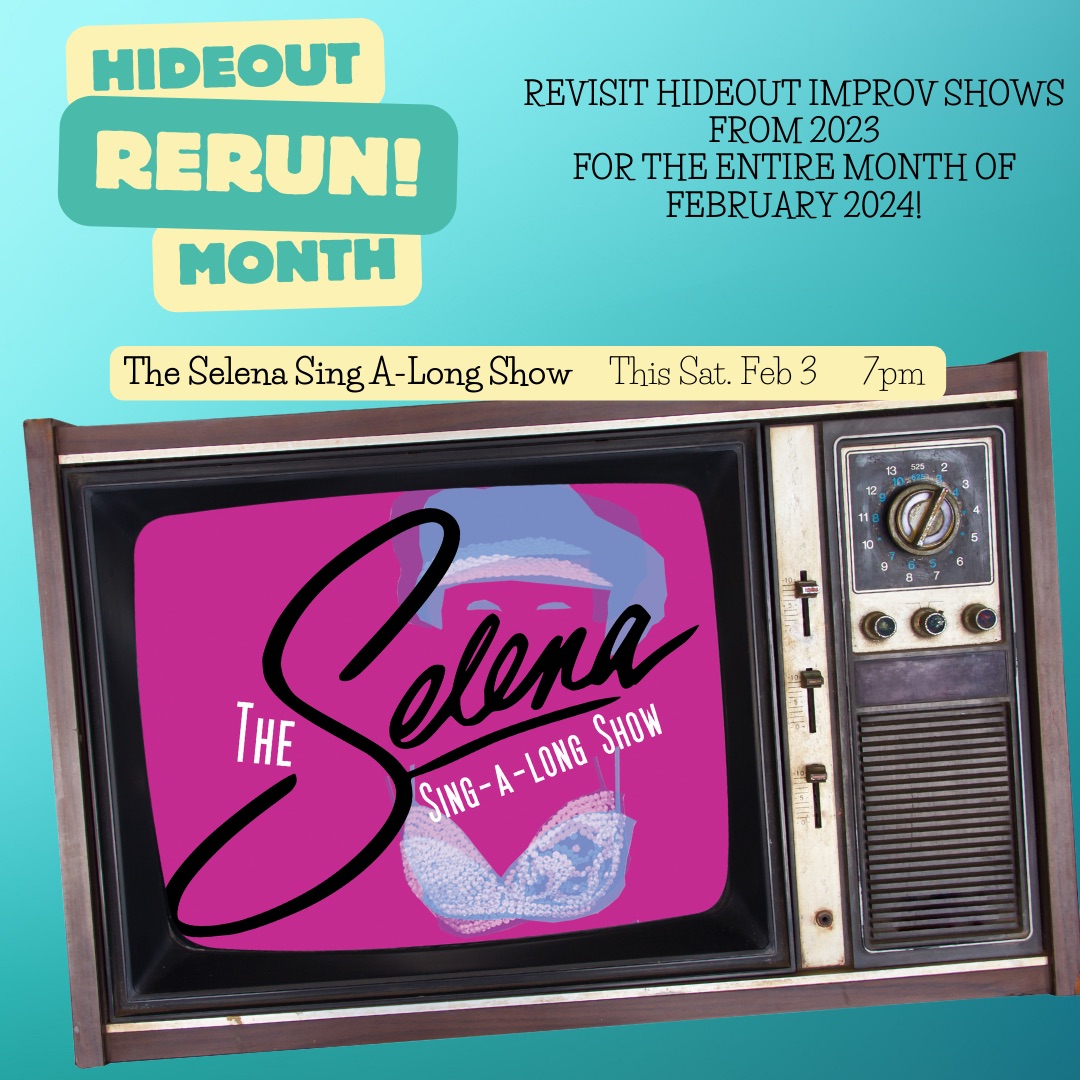 The Selena Sing-A-Long Show returns for one night only Sat. Feb. 3 at 7pm as part of Hideout Rerun Month! The Selena Sing-A-Long Show is a show about a young girl with a big dream! As we follow her from teen years into adulthood, as we watch her triumphs and learn about her dreams, we´ll all feel that moment and we´ll all know…it´s time to play a Selena song.