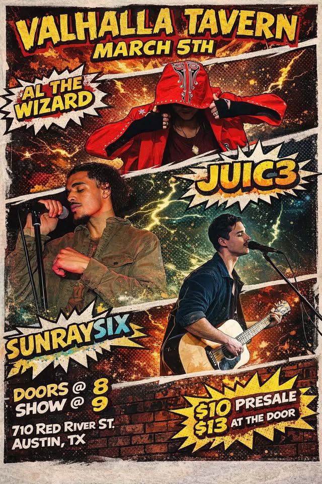 Thurs March 4 AL the Wizard, Juic3, Sunraysix