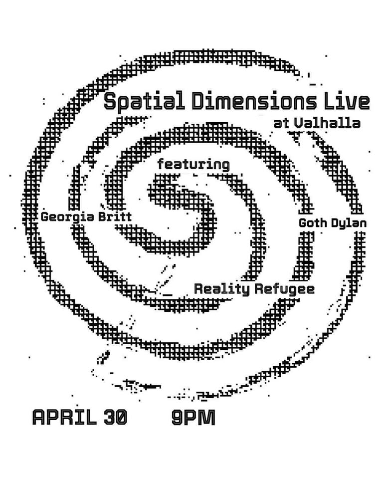 Thursday April 30 Goth Dylan, Spatial Dimensions, Reality Refugee, Georgia Britt