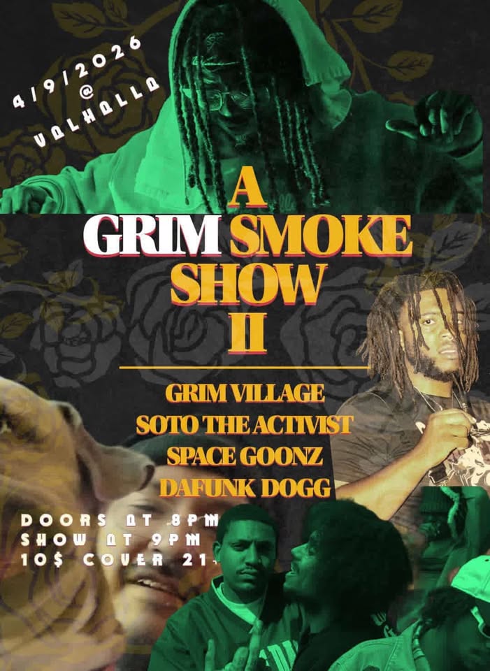 Thursday April 9 Grim Village, Soto the Activist, Space Goonz, Dafunkdogg