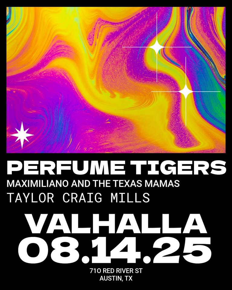 Back to Thursday Aug 14 Perfume Tigers, Maximiliano & the Texas Mamas, Taylor Craig Mills