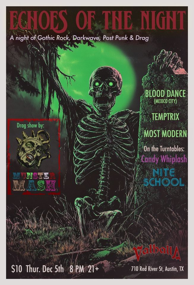 Thursday Dec 5th Blood Dance, Most Modern, Temptrix, DJ Candy Whiplash, Munster Mash