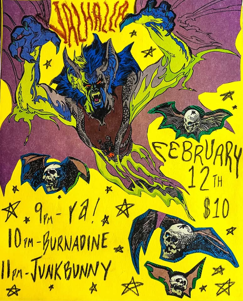 Thursday Feb 12 Junkbunny, Burnadine, Ya!