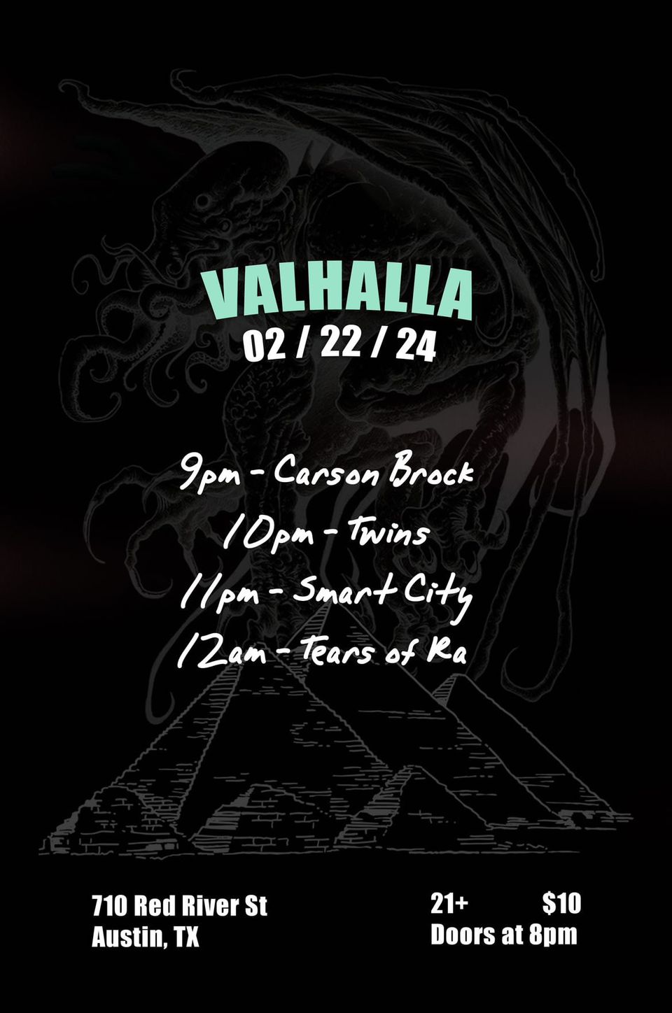 Back to Thursday Feb 22 Tears of Ra, Smart City, Twins, Carson Brock